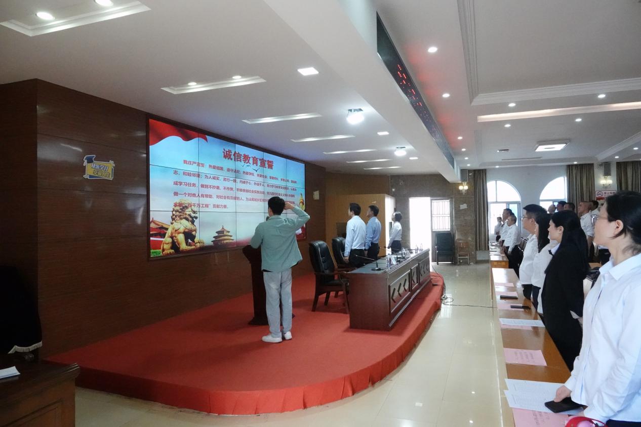 新生代表、2025、秋行政管理(廣開本科)專業(yè)學(xué)生伍浩然發(fā)言。隨后,舉行誠(chéng)信教育宣誓儀式,由伍浩然領(lǐng)誓,全體師生共同參與。