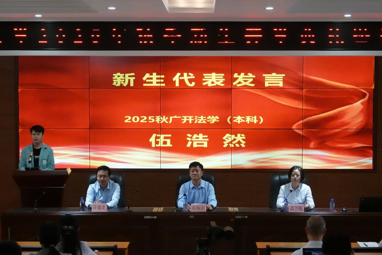 新生代表、2025、秋行政管理(廣開本科)專業(yè)學(xué)生伍浩然發(fā)言。隨后,舉行誠(chéng)信教育宣誓儀式,由伍浩然領(lǐng)誓,全體師生共同參與。